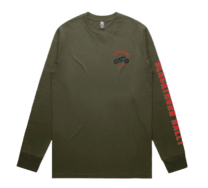 Blackthorn Rally 10th Anniversary green long sleeve t-shirt.